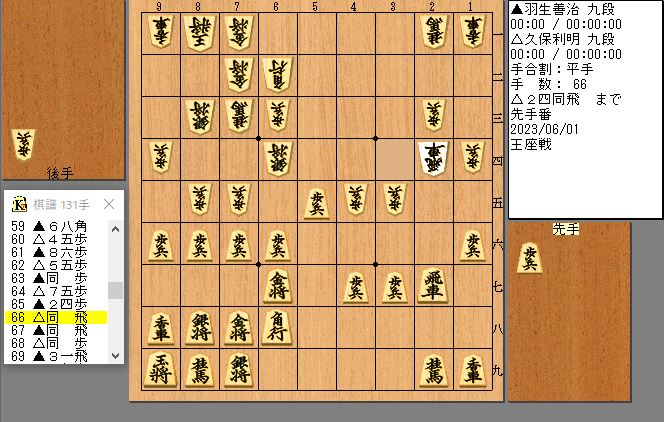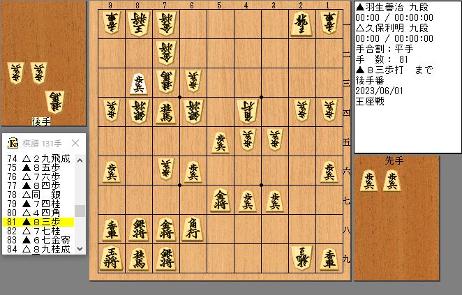 #後期高齢者#ライフスタイル#棋譜#王座戦挑戦者決定トーナメント#羽生善治#久保利明#次の一手#手筋#三間飛車#ごきげんよう(^_-)-☆