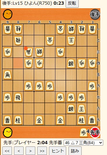 プレイヤー 対 Lv15 ひよん(R750)#ぴよ将棋https://t.co/pXIBcY2otC