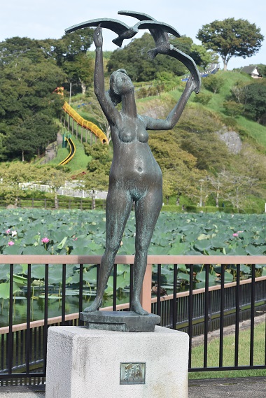 この「翔」と名付けられた像が公園の入り口で目に飛び込んできます。