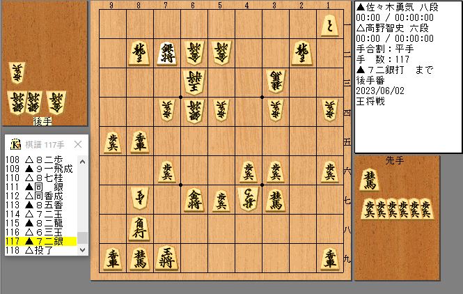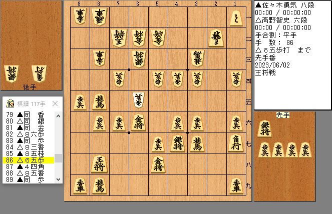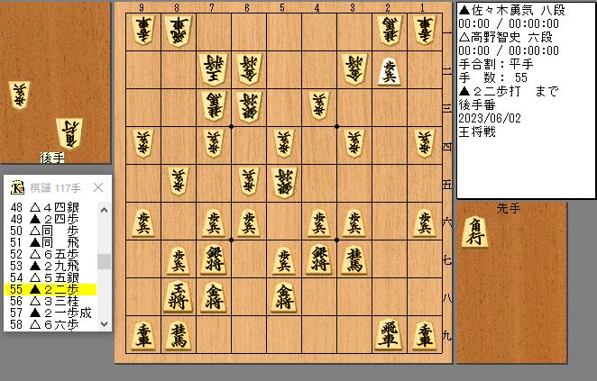 #後期高齢者#ライフスタイル#棋譜#王将戦一次予選#佐々木勇気#高野智史#次の一手#手筋#角換わり腰掛け銀#画像の左寄せ
