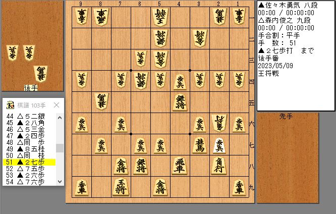 #王将戦一次予選#雁木#佐々木勇気#森内俊之#棋譜