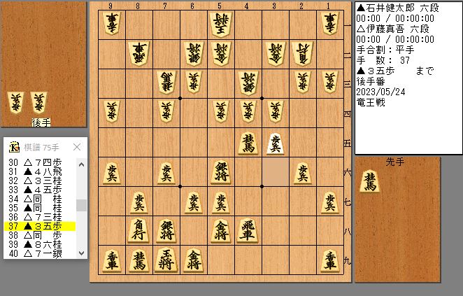 37手目35歩仕掛けの一手は☗3五歩でした。