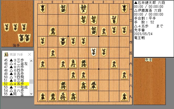 52手目☖4五歩まで。先手番。52手目45歩