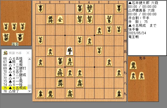 75手目65飛成まで後手投了
