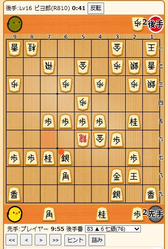 プレイヤー 対 Lv15 ひよん(R750)#ぴよ将棋https://t.co/pXIBcY2otC